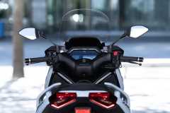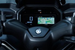 Jego zaawansowana specyfikacja obejmuje elektrycznie regulowaną szybę, która doskonale chroni przed wiatrem. Zmodernizowany kokpit zapewnia pełną łączność, a także możliwość korzystania z darmowej nawigacji Garmin* przez smartfona, połączeń, wiadomości, muzyki i innych funkcji. Oryginalne kolory Tech MAX z charakterystycznymi elementami nadwozia podkreślają klasę tego skutera. (* Aplikacja z nawigacją będzie niedostępna w niektórych krajach. Informacje o ograniczeniach prędkości, natężeniu ruchu itp. nie są dostępne w niektórych krajach i regionach. Informacje o ograniczeniach prędkości mogą być aktualizowane z opóźnieniem, a same wartości ograniczeń zmieniać się zależnie od pory dnia, np. w sąsiedztwie szkół czy placów budowy.)